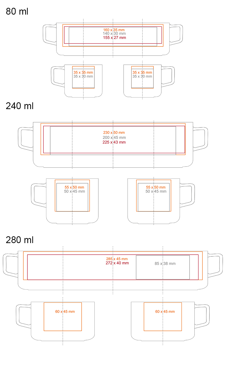 Dostępne zdobienia dodatkowe dla produktu HORIZON: *  (80 / 240 / 350 ml)