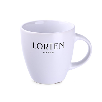 Matowy kubek o popularnym kształcie. Na szkliwie kubków mogą wystąpić drobne nakłucia.