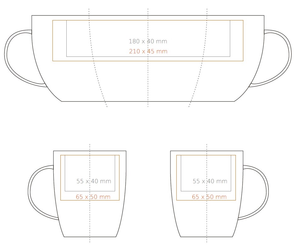 * W przypadku projektów wybiegających poza standardową powierzchnię nadruku prosimy o kontakt z działem handlowym.